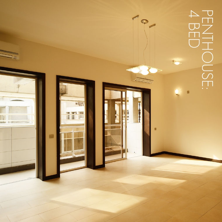 Similar to the 5 bedroom Penthouse, this 580sqm space consists of 4 bedrooms all with adjoining en-suite bathrooms, fully fitted kitchen complete with appliances such as wine chiller, fridge/freezer, gas and electric cookers, oven etc; 2 Boys' Quarters (with en-suite bathrooms), living room, reception, kitchenette, living room, bar, family room,